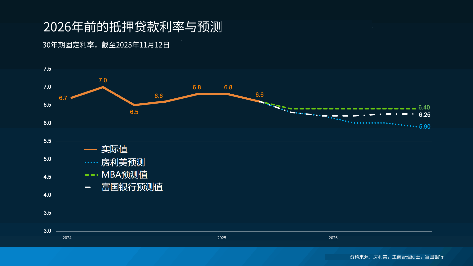 首先,大多数专家认为,房贷利率在2026年之前大概率会维持在当前水平。所以,利率会比现在低很多其实并没有保证。只有一位专家预测明年利率可能会降到5%多一点(见下图):